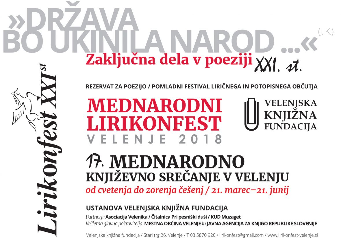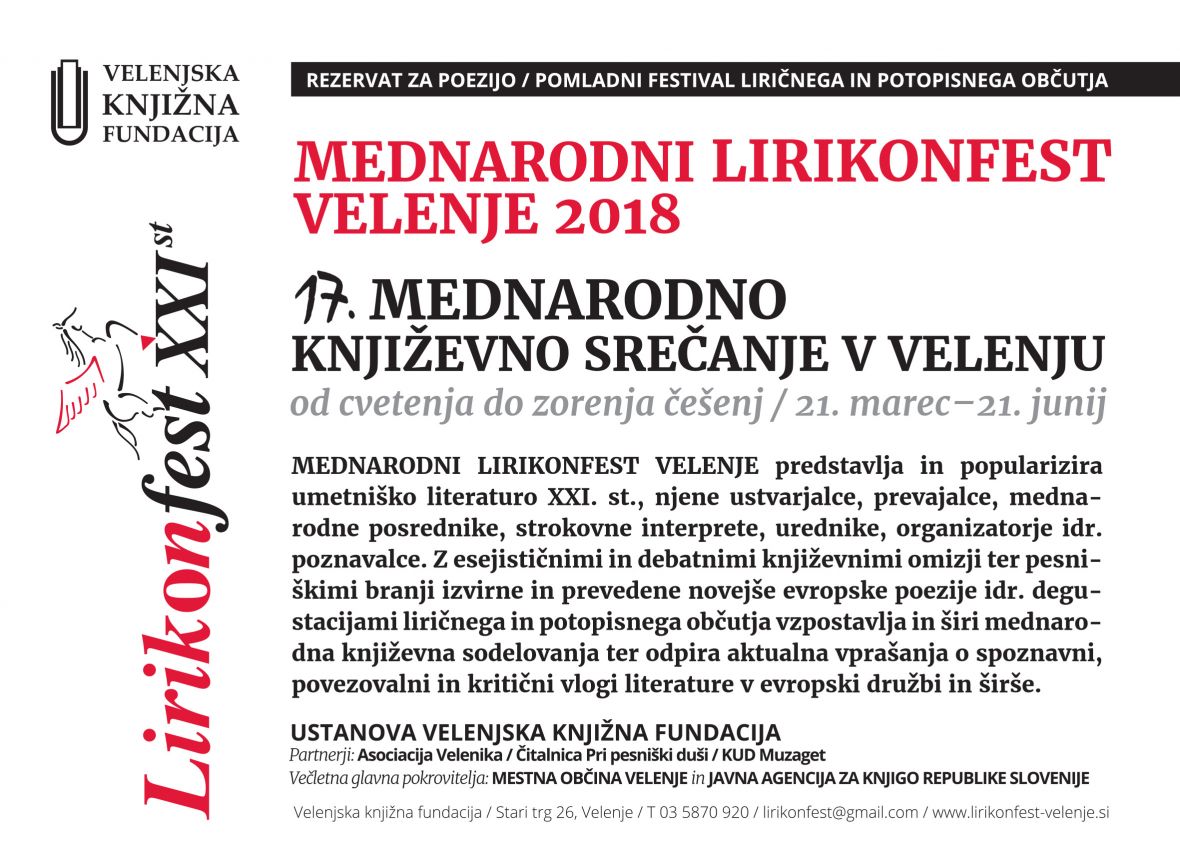 Dobitnika mednarodne Pretnarjeve nagrade 2018 (častnega naslova »ambasador slovenske književnosti in jezika«) ter Lirikonovega zlata 2018 (festivalne plakete za vrhunske revijalne prevode evropske poezije XXI. st. (v letu 2018 razpisno iz slovenščine v nemščino, obj. v festivalni antologiji Rp. Lirikon21), bosta znana 9. maja.