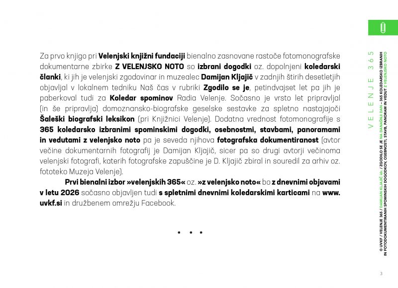 Velenjski knjižni pozdrav 2025 – Pri Velenjski knjižni fundaciji je v zbirki »Z velenjsko noto« izšel domoznanski knjižni koledar z izbranimi dogodki na vse dni v letu: