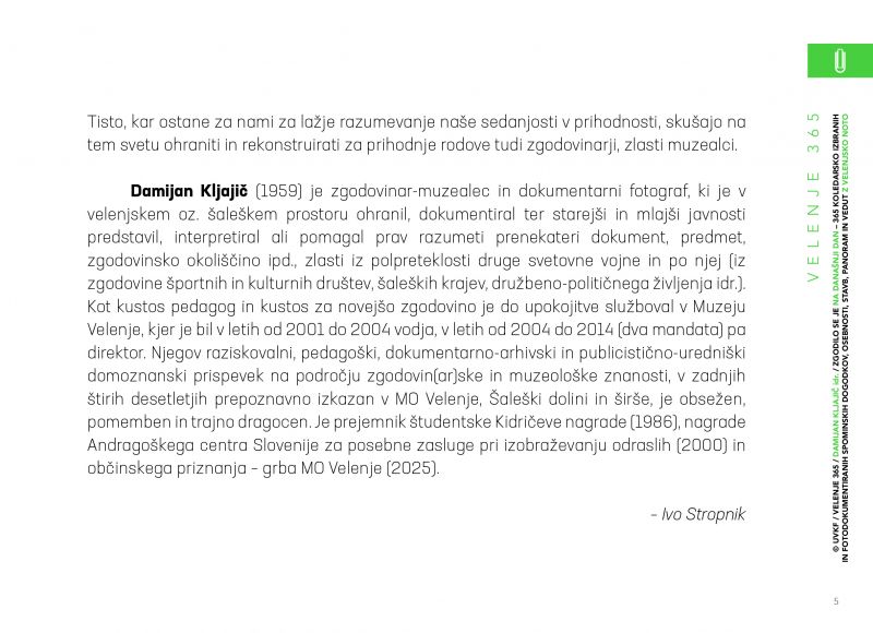 Damijan KLJAJIČ idr.: Zgodilo se je na današnji dan – 365 koledarsko izbranih in fotodokumentiranih spominskih dogodkov, osebnosti, stavb, panoram in vedut / skupaj z avtorjem uredila Ivo Stropnik in Pia Pogorelčnik; fotografije Damijan Kljajič idr. / 1. bienalna izdaja (2025/2026) / oblikovala Mia Mondo / 444 str., broširano /